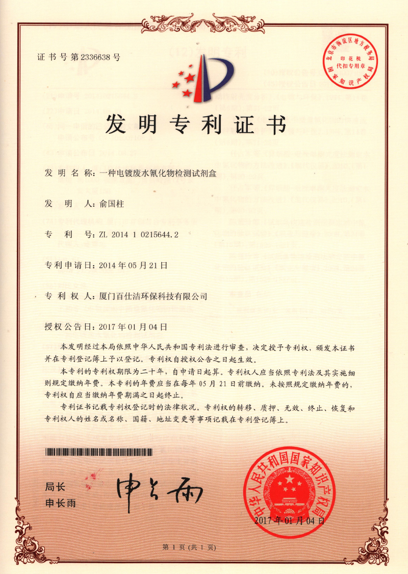 發(fā)明專利證書